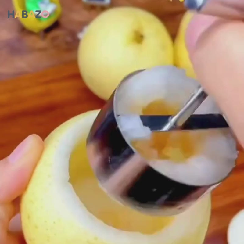 Dụng cụ khoét lõi Habazo. Dành cho bố mẹ muốn bất ngờ. Chỉ một vòng xoay nhẹ, bạn đã có ngay chiếc ly trái cây sạch gọn, tròn đều, sẵn sàng cho một buổi chiều đầy tiếng cười.