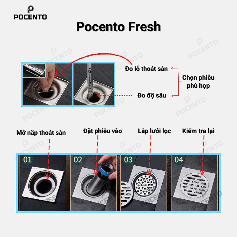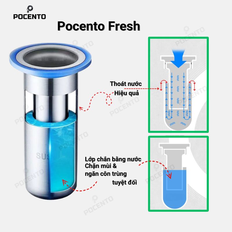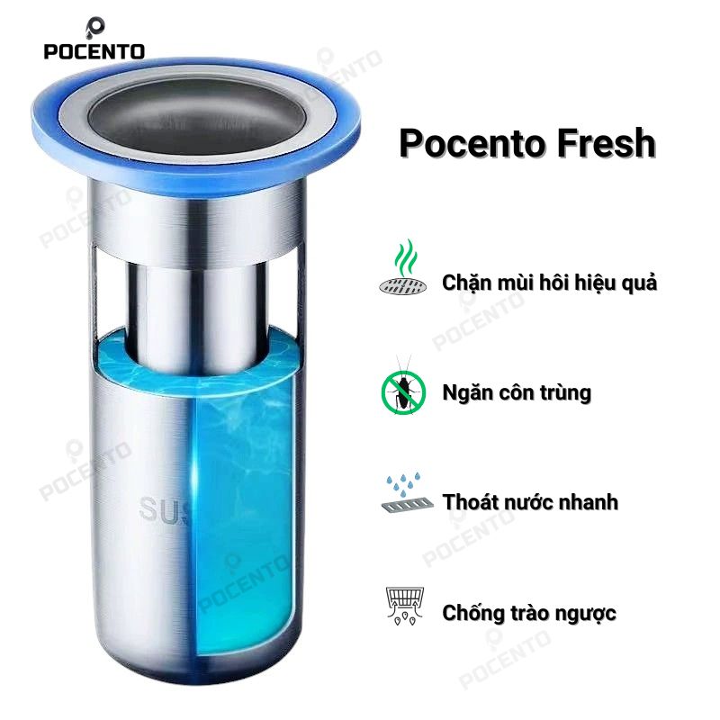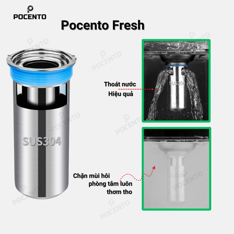 Pocento Fresh có nhiều kích thước từ 38-55mm, phù hợp với hầu hết các loại sàn. Bạn chỉ cần đo đường kính miệng cống trước khi mua để chọn kích thước chính xác.